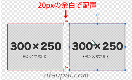 たとえば2つのレイヤー同士の間隔を20px取って配置したとします。