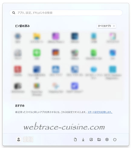 Windowsキーを押すと下のような画面が出るのでTabキーを1回、↓キーを数回押して一番下の電源アイコンを選択状態にします。